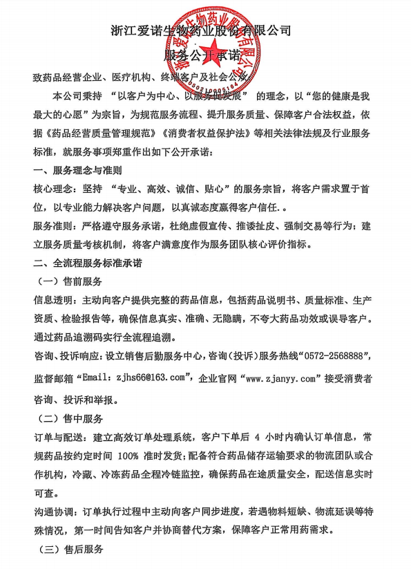 浙江愛諾生物藥業股份有限公司    互聯網藥品信息服務資格證:(浙)-非經營性-2017-0033