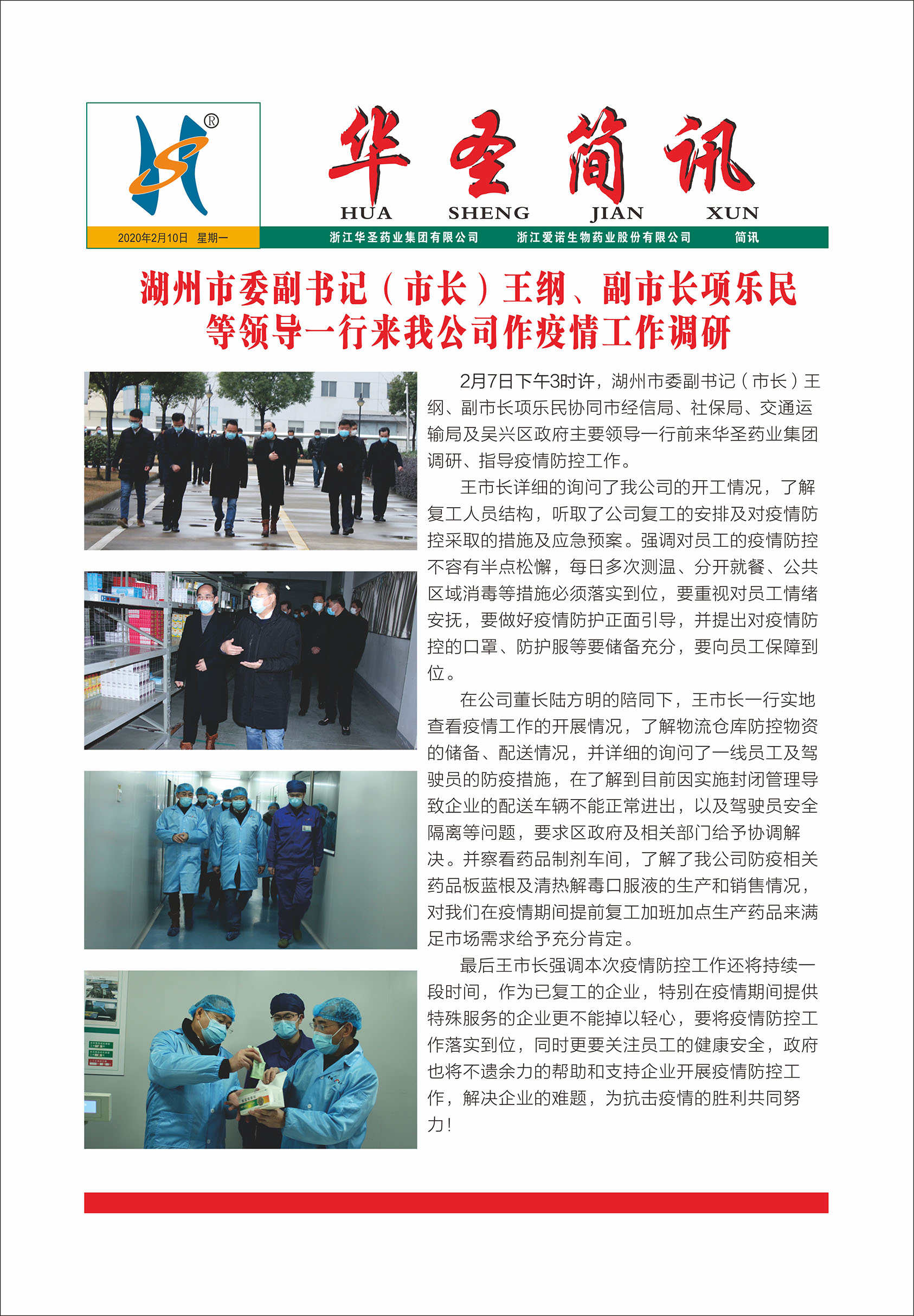 湖州市委副書記(代市長)王綱、副市長項(xiàng)樂民 等領(lǐng)導(dǎo)一行來我公司作疫情工作調(diào)研