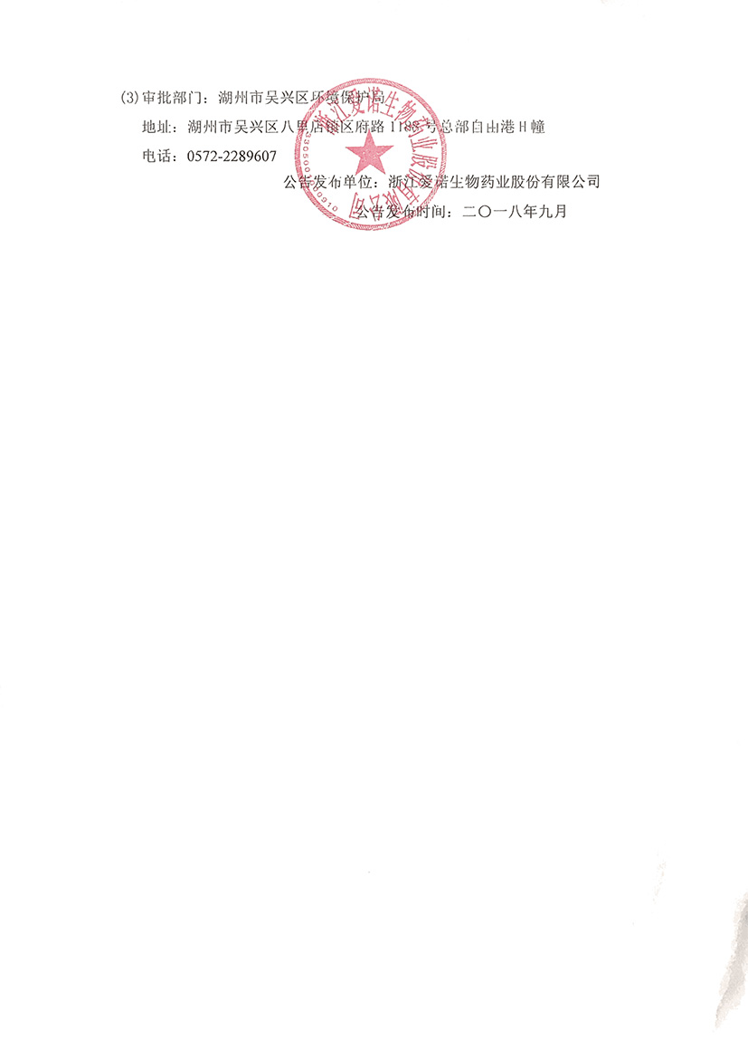 浙江愛諾生物藥業(yè)股份有限公司 地址:浙江省湖州市三環(huán)東路999號(hào) 備案號(hào):